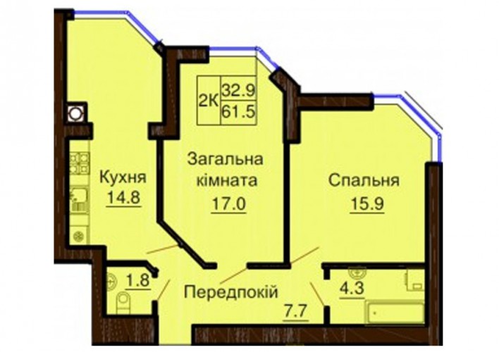 2-Х КІМНАТНА КВАРТИРА 61.50 М/КВ