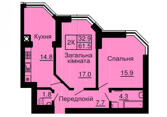 2-Х КІМНАТНА КВАРТИРА 61.50 М/КВ