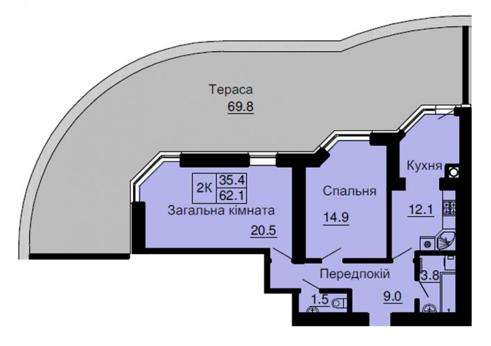 2-Х КІМНАТНА КВАРТИРА 62.10 М/КВ