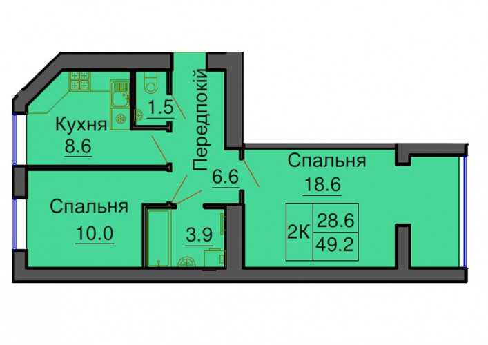 2-Х КІМНАТНА КВАРТИРА 49.20 М/КВ