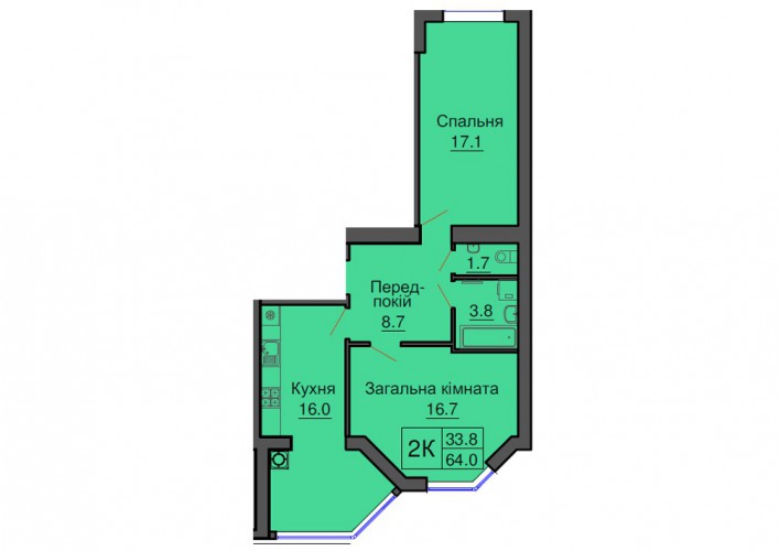 2-Х КІМНАТНА КВАРТИРА 64.00 М/КВ