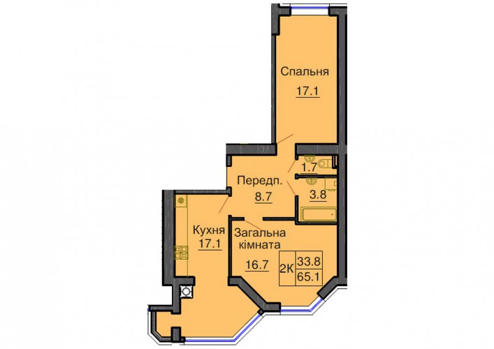 2-Х КІМНАТНА КВАРТИРА 65.10 М/КВ