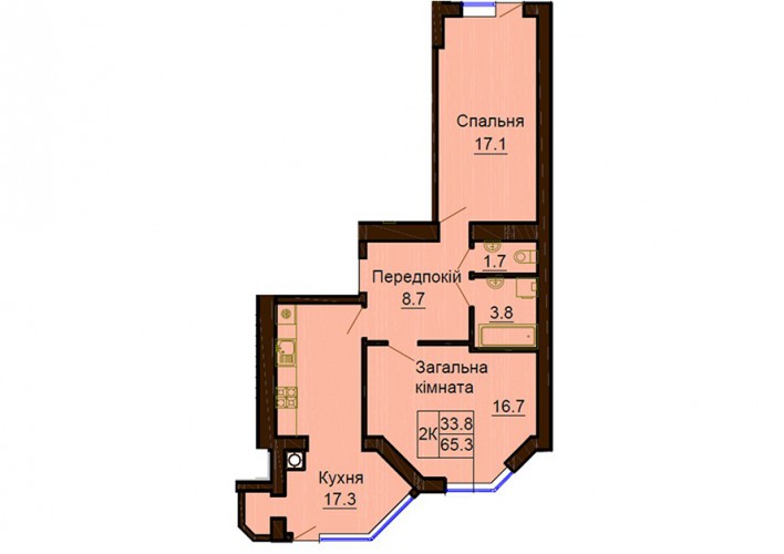 2-Х КІМНАТНА КВАРТИРА 65.30 М/КВ