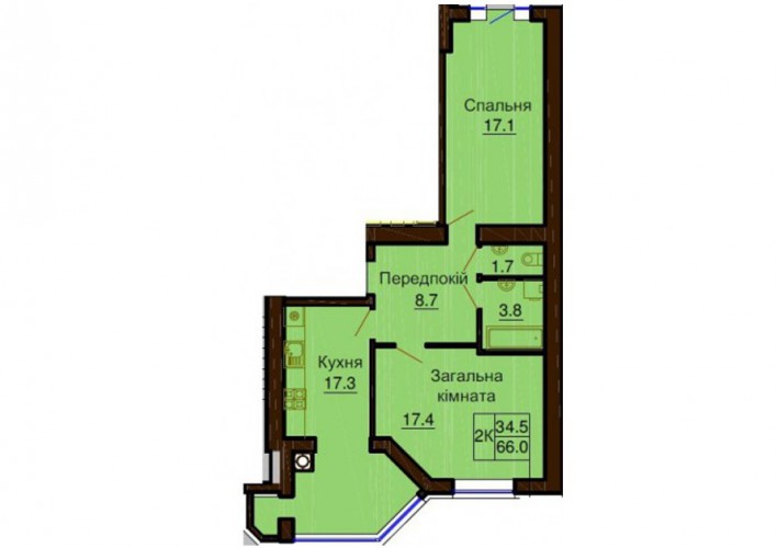 2-Х КІМНАТНА КВАРТИРА 66.00 М/КВ