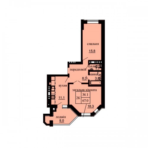 2-Х КІМНАТНА КВАРТИРА 67.00 М/КВ