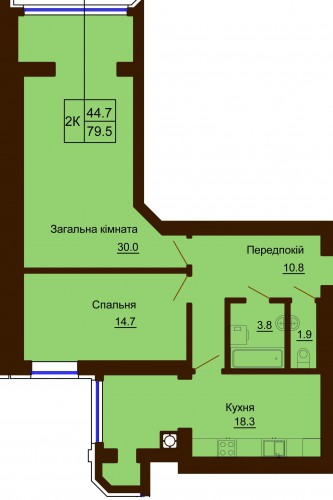 2-Х КІМНАТНА КВАРТИРА 79.50 М/КВ