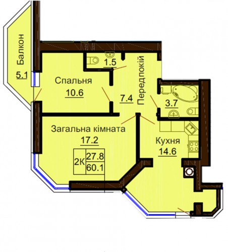 2-Х КІМНАТНА КВАРТИРА 60.10 М/КВ