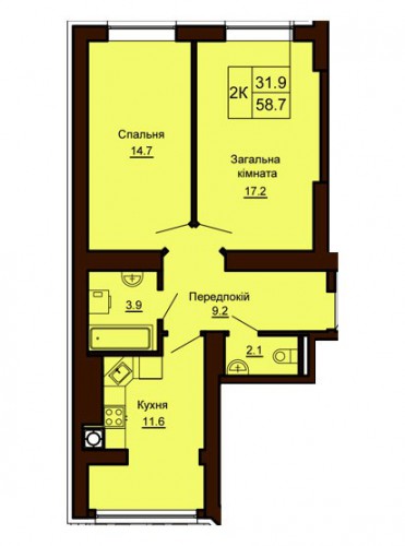 2-Х КІМНАТНА КВАРТИРА 58.70 М/КВ