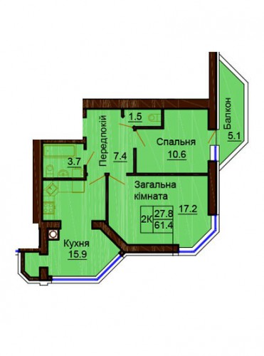 2-Х КІМНАТНА КВАРТИРА 61.40 М/КВ