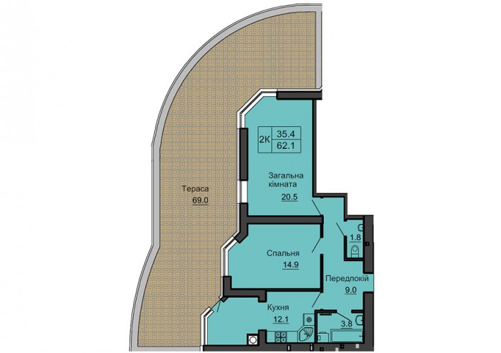 2-Х КІМНАТНА КВАРТИРА 62.10 М/КВ