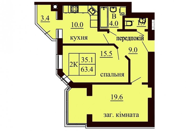 2-Х КІМНАТНА КВАРТИРА 63.40 М/КВ
