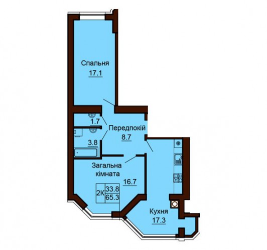 2-Х КІМНАТНА КВАРТИРА 65.30 М/КВ
