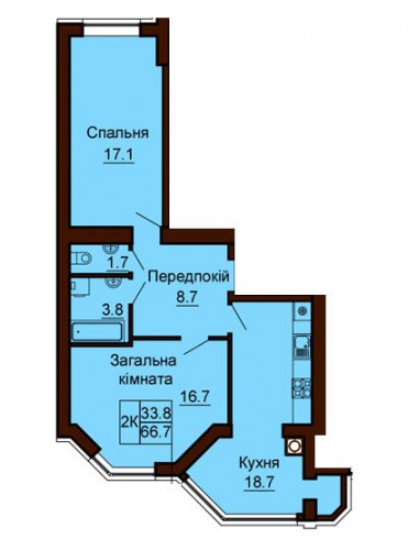 2-Х КІМНАТНА КВАРТИРА 66.70 М/КВ