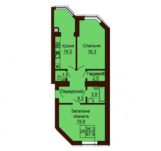 2-Х КІМНАТНА КВАРТИРА 67.90 М/КВ