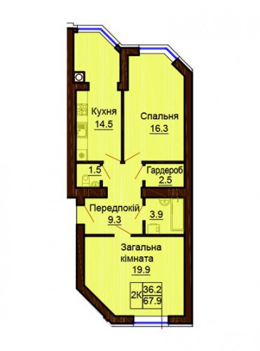 2-Х КІМНАТНА КВАРТИРА 67.90 М/КВ