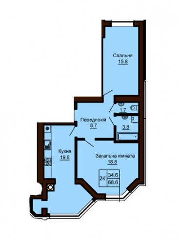 2-Х КІМНАТНА КВАРТИРА 68.60 М/КВ
