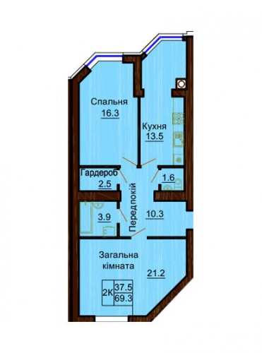 S загальна (м2): 69.30