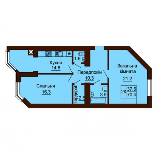 2-Х КІМНАТНА КВАРТИРА 70.40 М/КВ