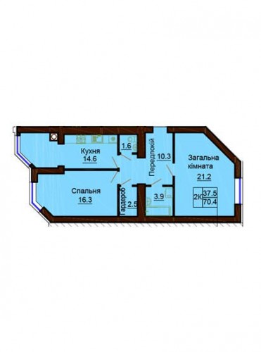 2-Х КІМНАТНА КВАРТИРА 70.40 М/КВ