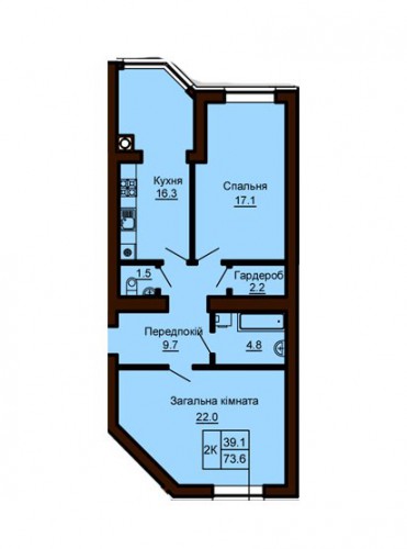 2-Х КІМНАТНА КВАРТИРА 73.60 М/КВ