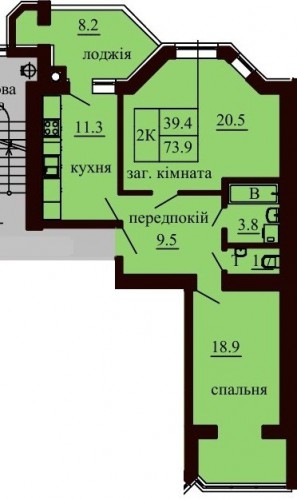 2-Х КІМНАТНА КВАРТИРА 73.90 М/КВ