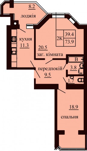 2-Х КІМНАТНА КВАРТИРА 73.90 М/КВ
