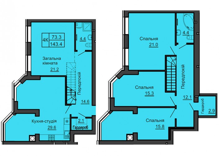 ДВОРІВНЕВА КВАРТИРА 143.40 М/КВ