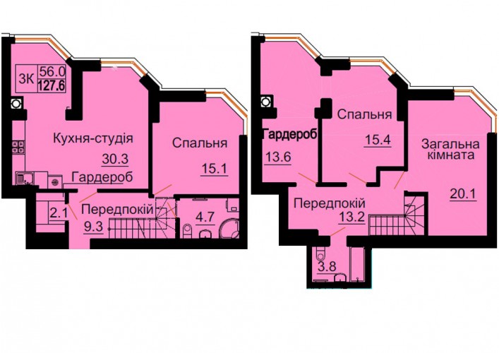ДВОРІВНЕВА КВАРТИРА 127.60 М/КВ