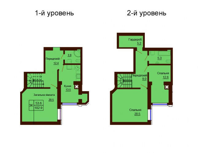 ДВОРІВНЕВА КВАРТИРА 102.90 М/КВ