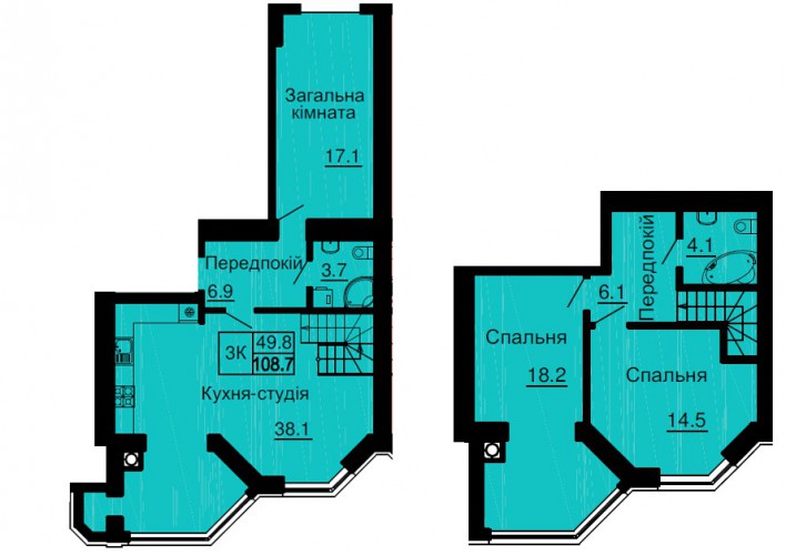ДВОРІВНЕВА КВАРТИРА 108.70 М/КВ