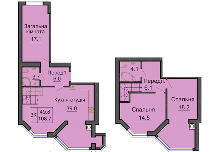 ДВОРІВНЕВА КВАРТИРА 108.70 М/КВ