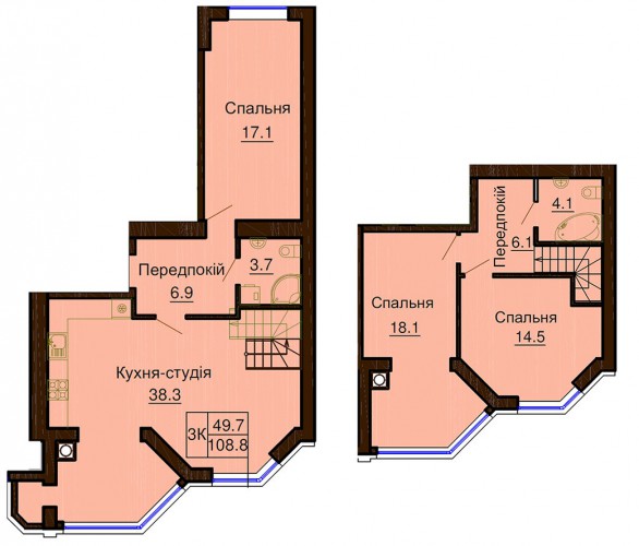 ДВОРІВНЕВА КВАРТИРА 108.80 М/КВ