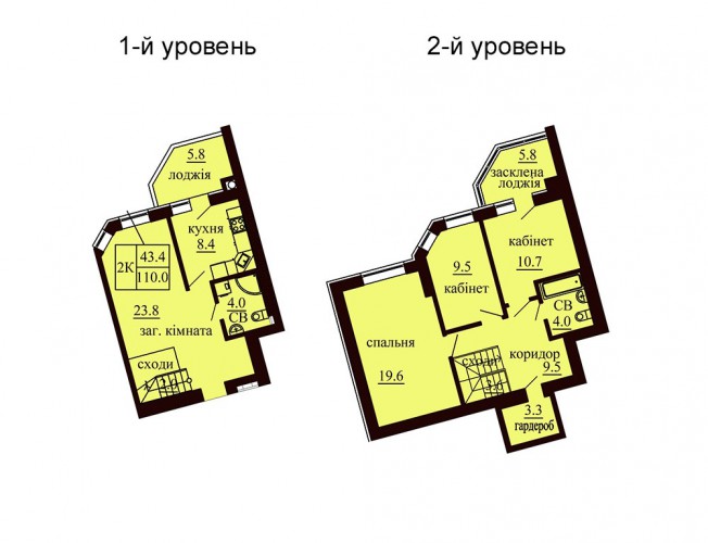 ДВОРІВНЕВА КВАРТИРА 110.00 М/КВ