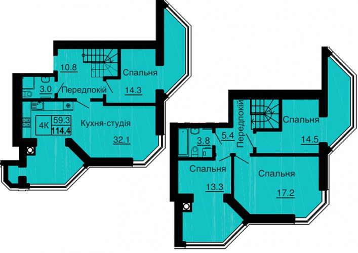 ДВОРІВНЕВА КВАРТИРА 114.40 М/КВ