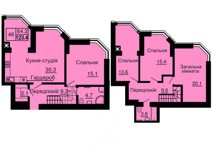 ДВОРІВНЕВА КВАРТИРА 123.40 М/КВ