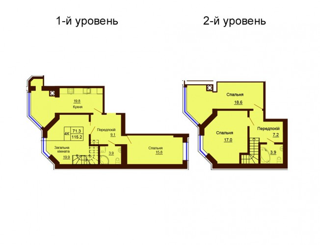 ДВОРІВНЕВА КВАРТИРА 115.20 М/КВ