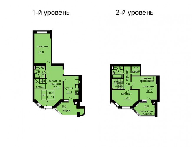 ДВОРІВНЕВА КВАРТИРА 117.10 М/КВ