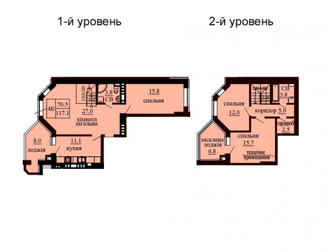 ДВОРІВНЕВА КВАРТИРА 117.10 М/КВ