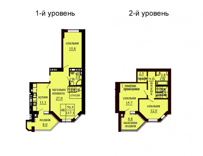 ДВОРІВНЕВА КВАРТИРА 117.10 М/КВ