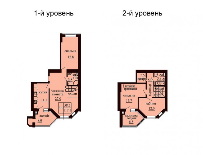 ДВОРІВНЕВА КВАРТИРА 117.10 М/КВ