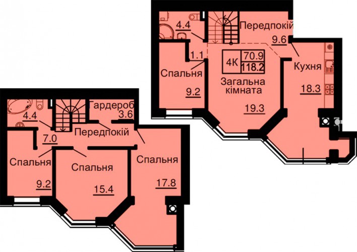 ДВОРІВНЕВА КВАРТИРА 118.20 М/КВ