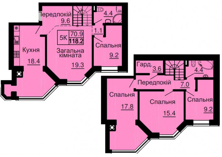ДВОРІВНЕВА КВАРТИРА 118.20 М/КВ