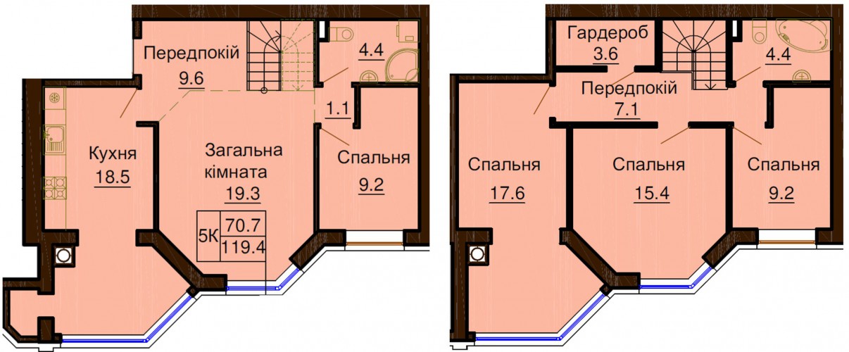 ДВОРІВНЕВА КВАРТИРА 119.40 М/КВ