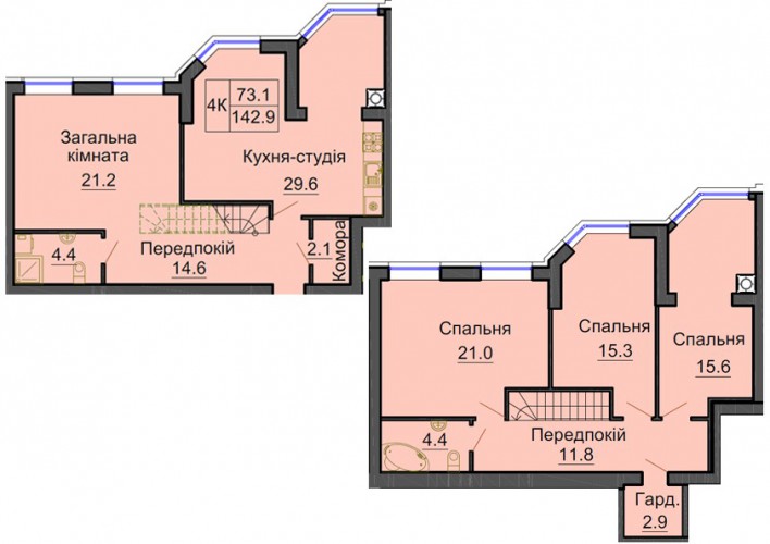 ДВОРІВНЕВА КВАРТИРА 142.90 М/КВ