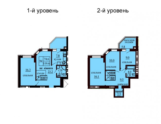 ДВОРІВНЕВА КВАРТИРА 119.60 М/КВ