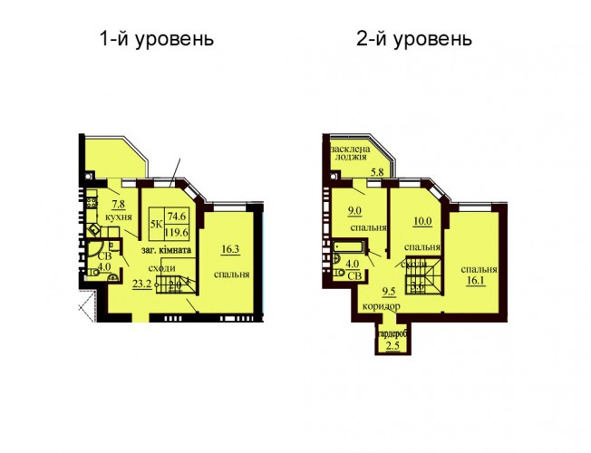 ДВОРІВНЕВА КВАРТИРА 119.60 М/КВ