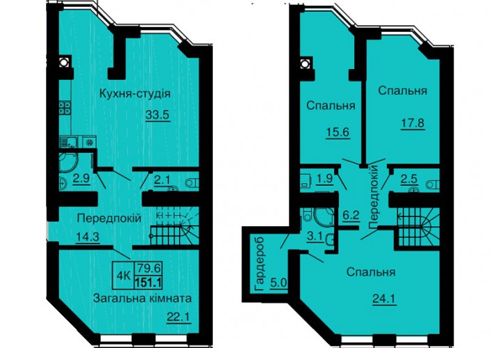 ДВОРІВНЕВА КВАРТИРА 151.10 М/КВ