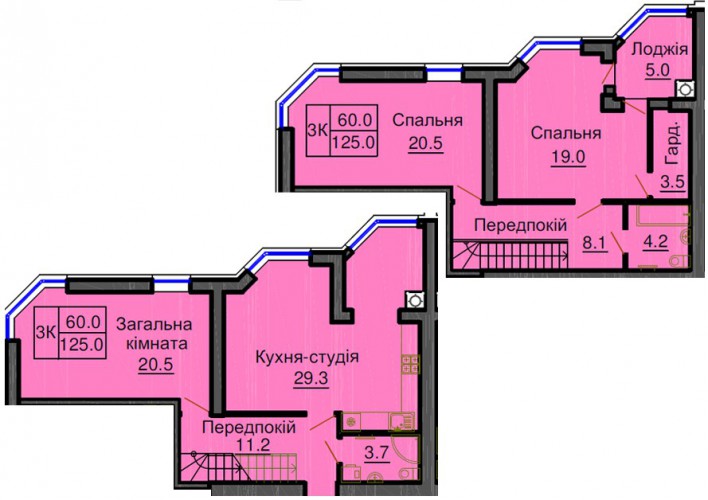 ДВОРІВНЕВА КВАРТИРА 125.00 М/КВ