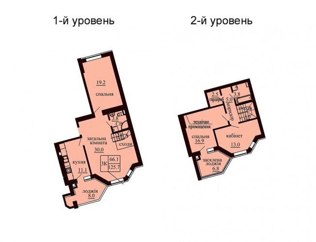 ДВОРІВНЕВА КВАРТИРА 125.70 М/КВ