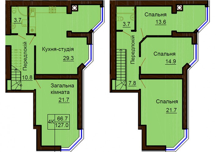 ДВОРІВНЕВА КВАРТИРА 127.00 М/КВ